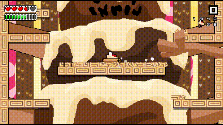 There were a lot of major issues throughout the entire Cake Baws process. It would spawn too high, the levels were tough to traverse, the boss failing to break through the blocks it should. These three issues were fixed over a day or two, but there were three major game breaking issues that I will mention later. The level generation was enhanced to make it easier to get to the top of the boss without any crazy jumps. Its difficult to visualize bug fixes in a 10 second clip.