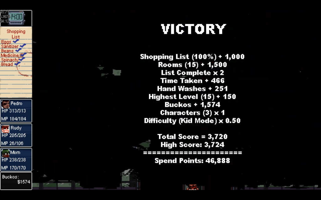 Since ViralMarket is both a role-playing game and procedural generated, player failure will happen and force the player to start from nothing again. To keep players interested beyond one game over, the player receives a score for a game over. This score can be spent in the ability shop.